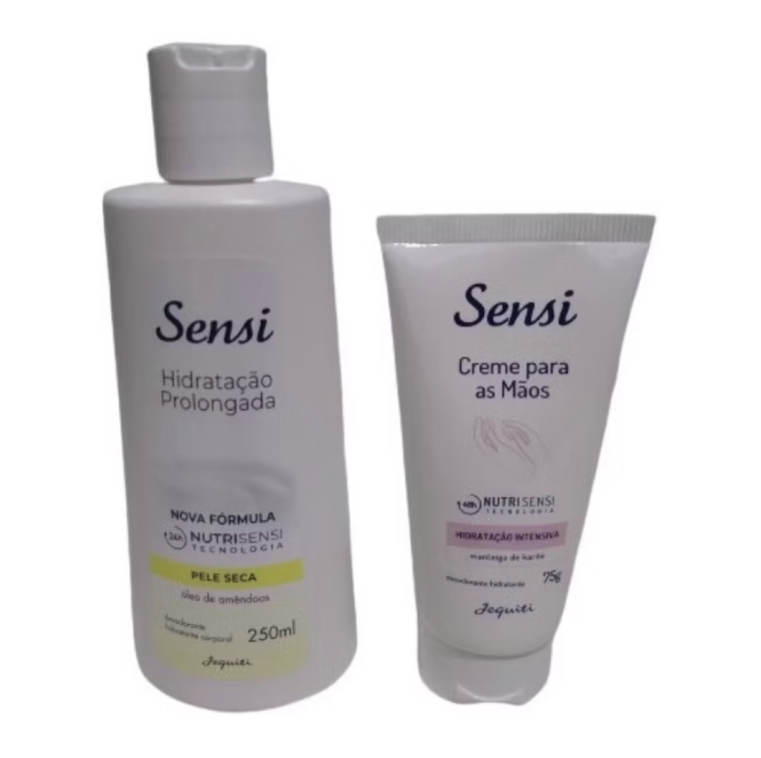 * Kit Hidratante Sensi: Esta linha é conhecida por suas fórmulas com a tecnologia NUTRISENSI, que promete hidratação prolongada. Os kits geralmente contêm dois frascos de hidratante de 400ml, ideais para pele seca, enriquecidos com ingredientes como óleo de amêndoas e glicerina.